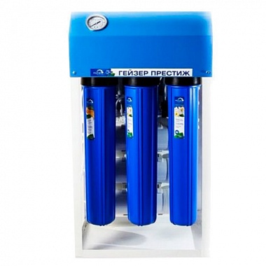 В системе Гейзер-Престиж-3-П-авто обратноосмотическая фильтрация происходит на блоке, состоящем из трех мембран типоразмера 3012 (240gpd). Благодаря этому производительность увеличивается, а объем сбросов уменьшается.